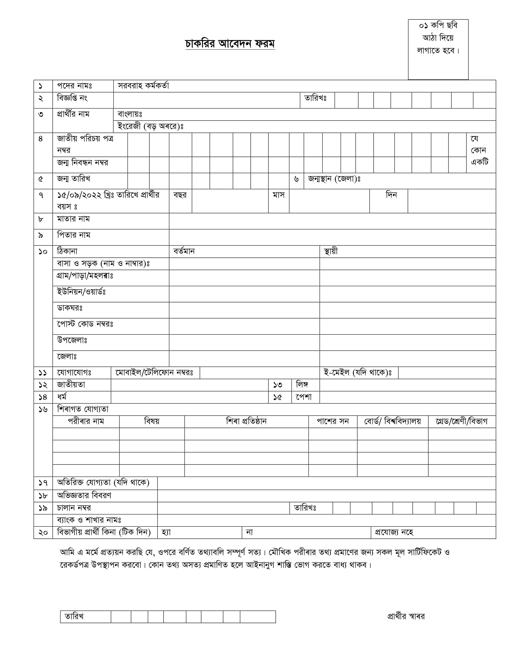 আবেদনের নিয়ম: আবেদনপত্র অফিস চলাকালীন সময়ে ১৭ ডিসেম্বর ২০২৫-এর মধ্যে পরিচালক (উপকরণ ও সরবরাহ), পরিবার পরিকল্পনা, ০৬ কাওরান বাজার, ঢাকা-১২১৫ ঠিকানায় পৌঁছে দিতে হবে।