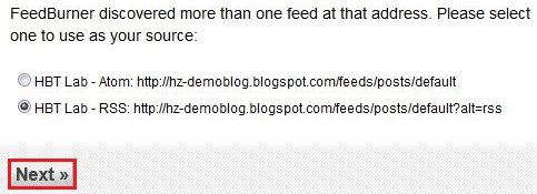 - এখন নিচের চিত্রে আপনার সাইটের টাইটেল লিখুন এবং Feed Address এ ডিফল্টভাবে একটি Address শো হবে। এটি পছন্দ না হলে আপনার পছন্দমত Address দিয়ে Next এ ক্লিক করুন। তাহলে আপনার Feedburner এড্রেসটি হবে https://feeds.feedburner.com/harunzoki